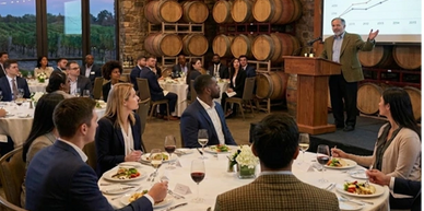 Engage in high-level discussions while enjoying a curated experience featuring fine wine, exquisite dining, and thought-provoking perspectives.